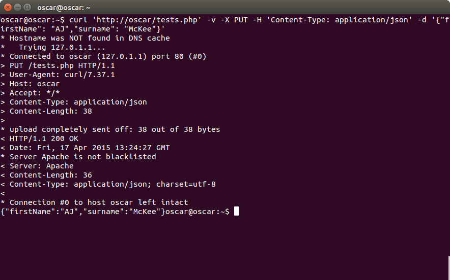 curl 'https://test.dev/profile' -v -X PUT -H 'Content-Type: text/html' -d '{"firstName": "AJ","surname": "McKee"}'