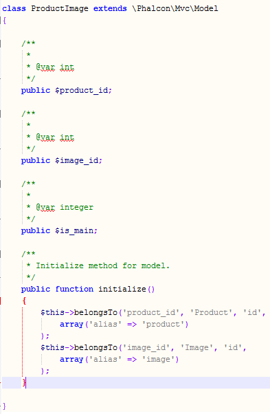 $this->hasMany('id','ProductImage','product_id',['alias'=>'product_images']);